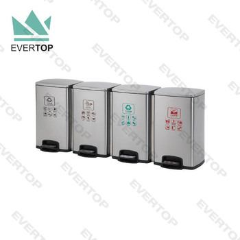 PD-D04D-20L 4 Compartment Stainless Steel Trash Pedal Bins 80L Garbage Bin Pedal Operated Sort Foot Press Dustbin Waste Bin