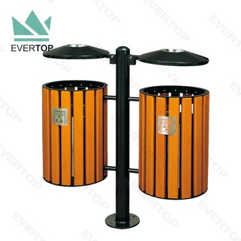 DA-78B Park View Vuilnisbak Regen Capuchon Staande Dubbele Outdoor Hout Prullenbak Dubbele Ronde Prullenbak Hout Vuilnisbak Met Luifel